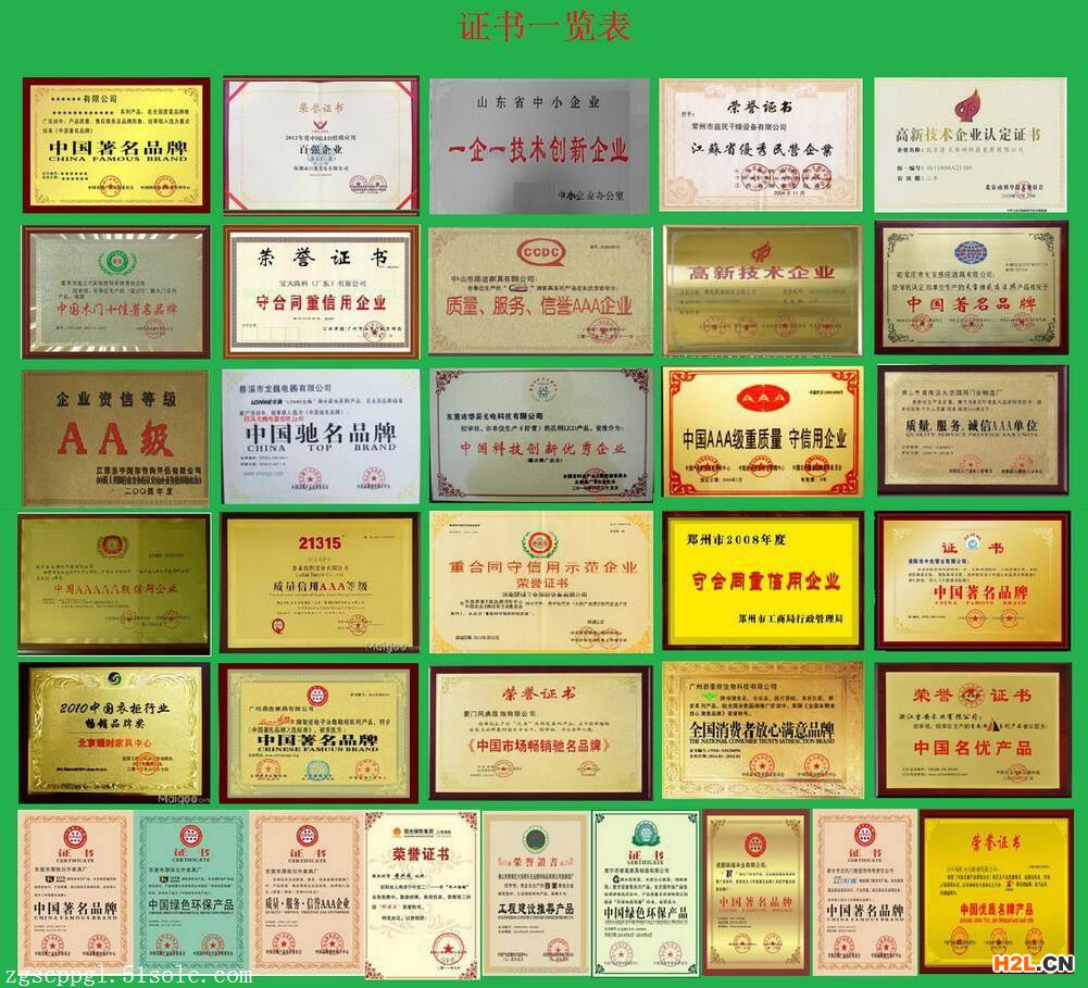 (中國品牌、綠色環(huán)保產(chǎn)品、質(zhì)量合格產(chǎn)品證書、行業(yè)暢銷品牌、中國315誠信企業(yè)等)