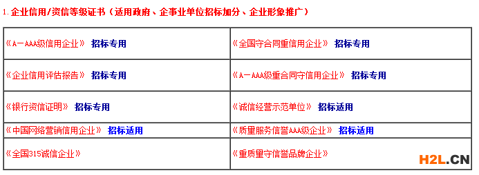 AAA信用等級、資信等級AAA、誠信供應(yīng)商、重合同守信用單位、守合同重信用企業(yè)、質(zhì)量服務(wù)誠信單位、誠信示范經(jīng)營單位、中國行業(yè)誠信銷售、質(zhì)量服務(wù)信譽AAA級誠信企業(yè)等。