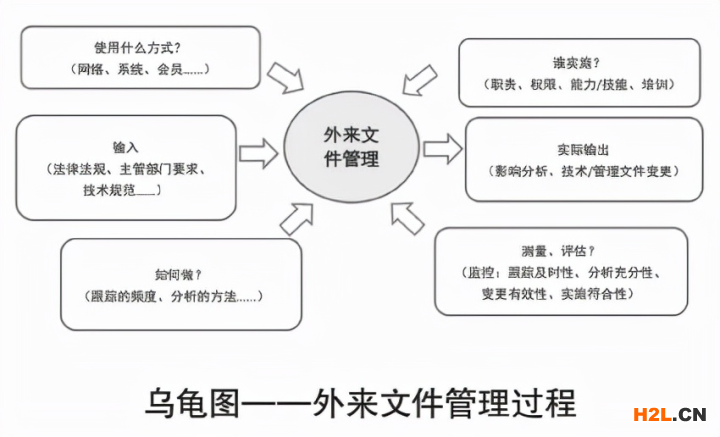 以外來(lái)文件管理(如法律法規(guī)、標(biāo)準(zhǔn))審核為例,通常在審核中,內(nèi)審員會(huì)發(fā)現(xiàn)某項(xiàng)新頒布或更新的法律法規(guī)/要求未收集并根據(jù)此發(fā)現(xiàn)開(kāi)具不符合,而基于過(guò)程的方法需充分審核過(guò)程控制的幾個(gè)方面,包括: