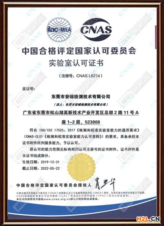 ?CNAS授權(quán)資質(zhì)(CNAS L6214)