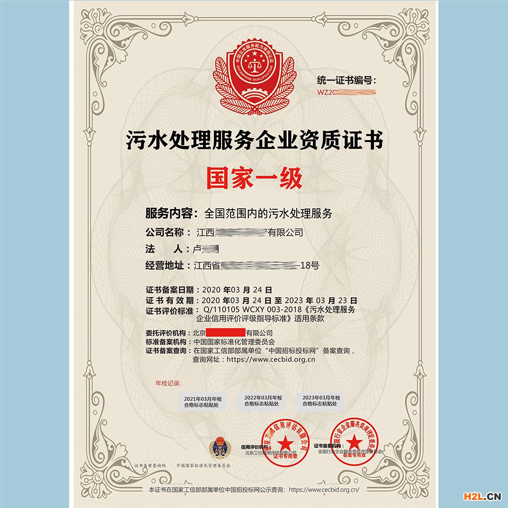 污水處理服務(wù)證書(shū)