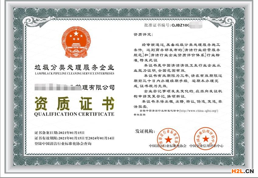 垃圾固廢資源化處理資質、醫(yī)院消毒清潔養(yǎng)護資質、客運車輛保潔服務資質
