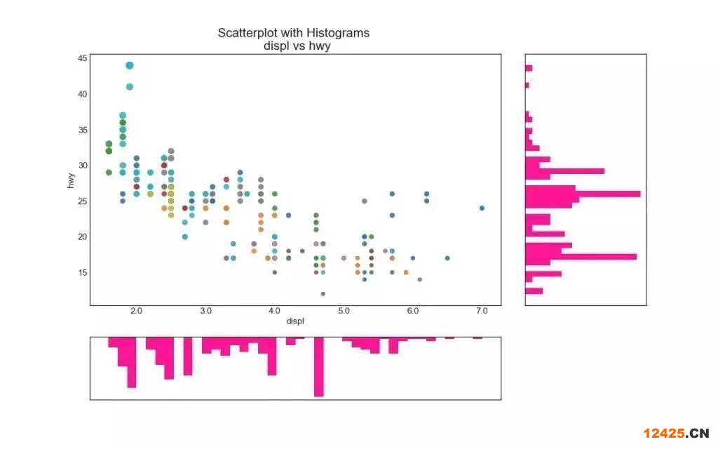 6. 邊緣直方圖 (Marginal Histogram) 邊緣直方圖具有沿 X 和 Y 軸變量的直方圖。 這用于可視化 X 和 Y 之間的關(guān)系以及單獨(dú)的 X 和 Y 的單變量分布。 這種圖經(jīng)常用于探索性數(shù)據(jù)分析(EDA)。
