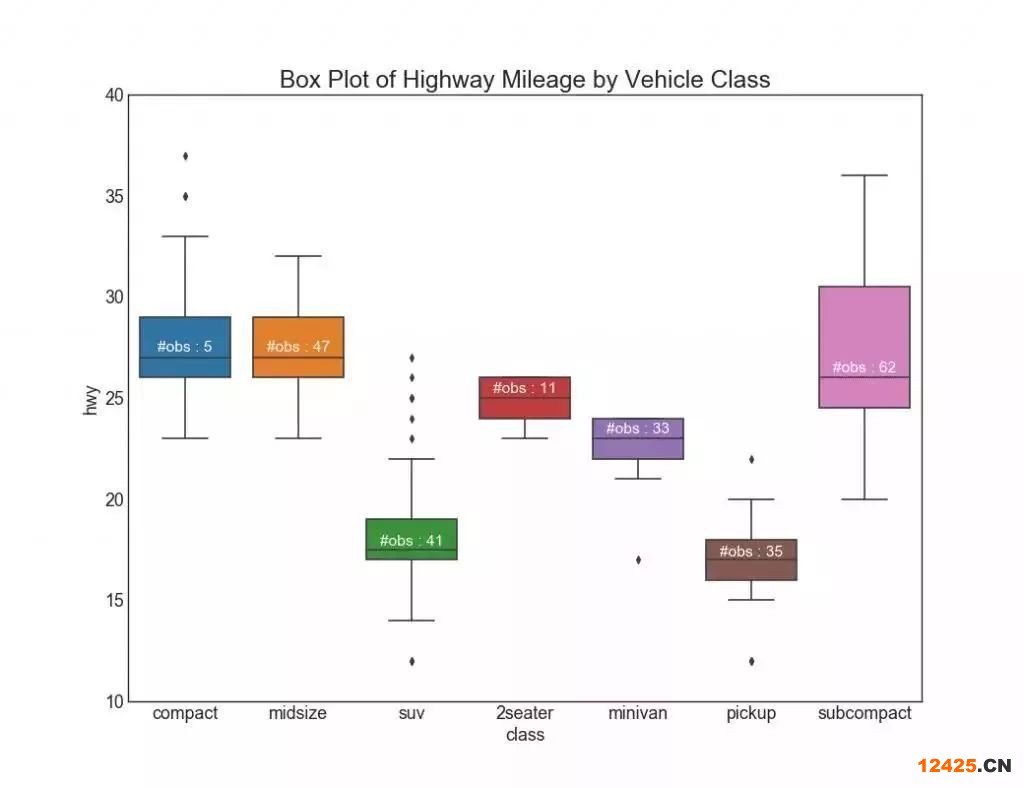 26. 箱形圖 (Box Plot) 箱形圖是一種可視化分布的好方法,記住中位數(shù)、第25個(gè)第45個(gè)四分位數(shù)和異常值。 但是,您需要注意解釋可能會(huì)扭曲該組中包含的點(diǎn)數(shù)的框的大小。 因此,手動(dòng)提供每個(gè)框中的觀察數(shù)量可以幫助克服這個(gè)缺點(diǎn)。
