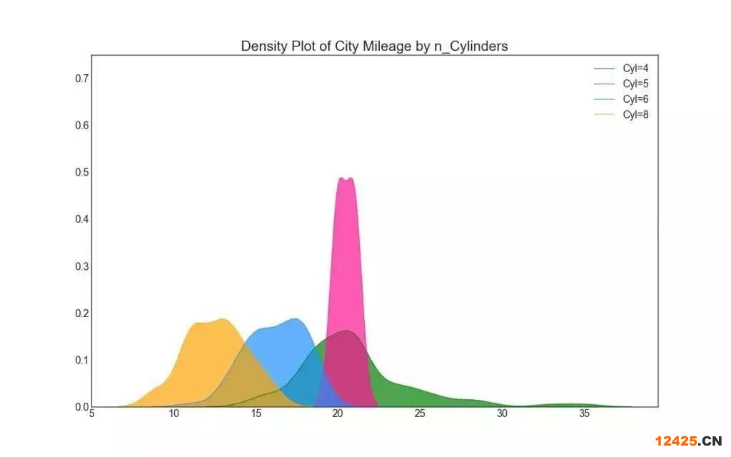22. 密度圖 (Density Plot) 密度圖是一種常用工具,用于可視化連續(xù)變量的分布。 通過“響應(yīng)”變量對(duì)它們進(jìn)行分組,您可以檢查 X 和 Y 之間的關(guān)系。以下情況用于表示目的,以描述城市里程的分布如何隨著汽缸數(shù)的變化而變化。
