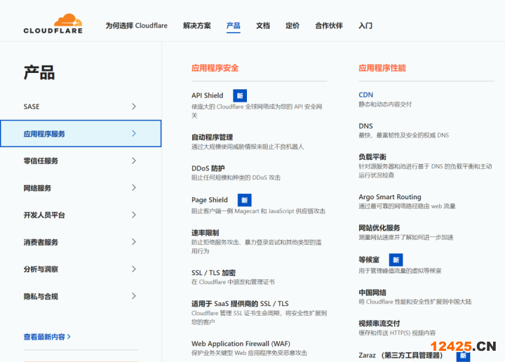 (圖1:cloudflare官網(wǎng)上的產(chǎn)品功能列表)