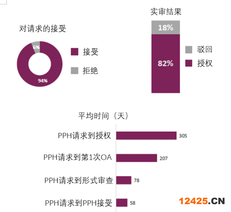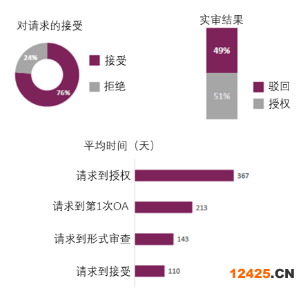 下圖展示了參與本途徑的350件專利申請的審查情況。