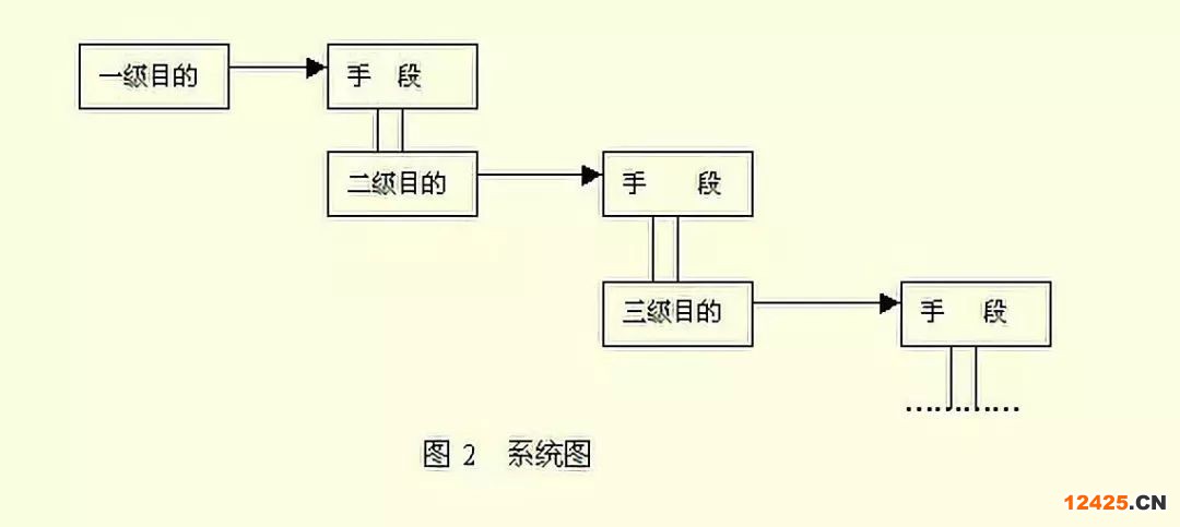 系統(tǒng)圖,是指系統(tǒng)尋找達到目的的手段的一種方法,它的具體做法是將把要達到的目的所需要的手段逐級深入,如下圖所示。