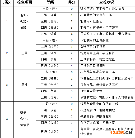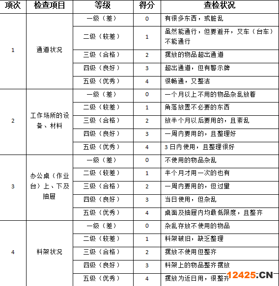 核心提示:實用性很強的5S管理檢查表。5S起源于日本,是指在生產(chǎn)現(xiàn)場對人員、機器、材料、方法等生產(chǎn)要素進行有效管理,這是日本企業(yè)獨特的一種管理辦
