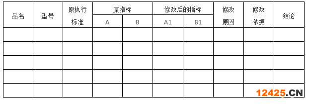 (二)質(zhì)量標(biāo)準(zhǔn)變動(dòng)表