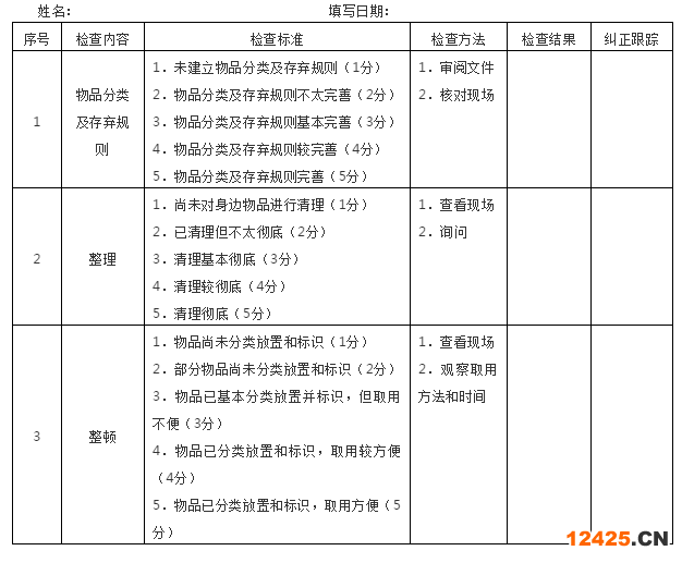 (一)質(zhì)量管理標(biāo)準(zhǔn)表