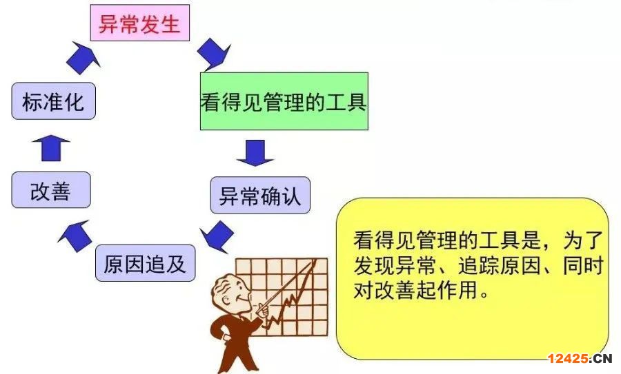 只要走到現(xiàn)場一看,不管是誰都可以很清楚的指出問題點(diǎn)和對策的要點(diǎn),這就是現(xiàn)場的一種管理方法。