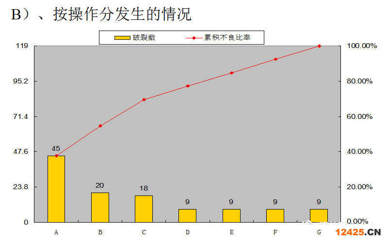 3)、按工程分/操作分的情況發(fā)生A元件破裂柏拉圖