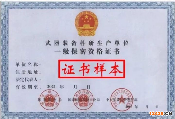武器裝備科研生產(chǎn)單位保密資格分為一級(jí)、二級(jí)和2個(gè)等級(jí)。保密資格證書有效期5年。