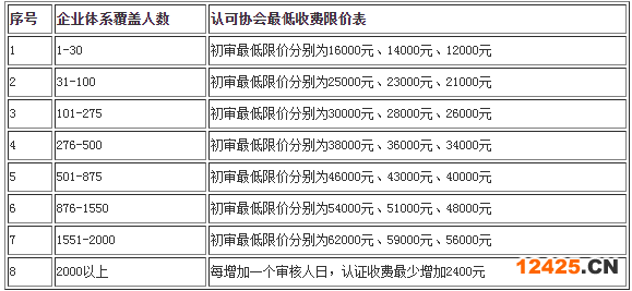 ISO14001/OHSAS18001環(huán)境/職業(yè)健康安全管理體系認(rèn)可協(xié)會(huì)最低收費(fèi)限價(jià)表: