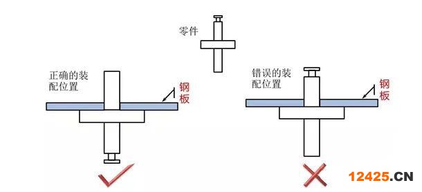 設計人員率先發(fā)言:“這個零件的上下部分直徑一致,員工不留心就容易裝反,所以可以讓有’槽’的一邊直徑大于鋼板孔徑,就能避免操作出錯。”