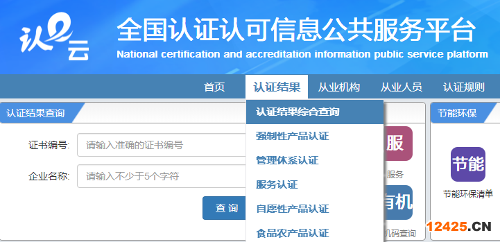 查詢企業(yè)的ISO9001認(rèn)證方法2、點(diǎn)擊“認(rèn)證結(jié)果”中“認(rèn)證結(jié)果綜合查詢”;