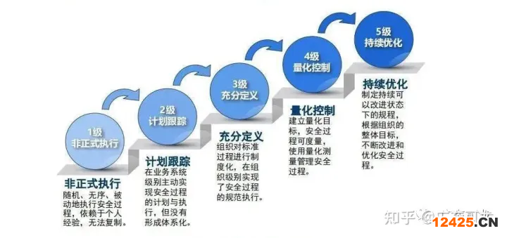 2)維度二:能力成熟度等級(jí)(5級(jí))共分為5級(jí),具體包括:1級(jí)是非正式執(zhí)行級(jí),2級(jí)是計(jì)劃跟蹤級(jí),3級(jí)是充分定義級(jí),4級(jí)是量化控制級(jí),5級(jí)是持續(xù)優(yōu)化級(jí)。