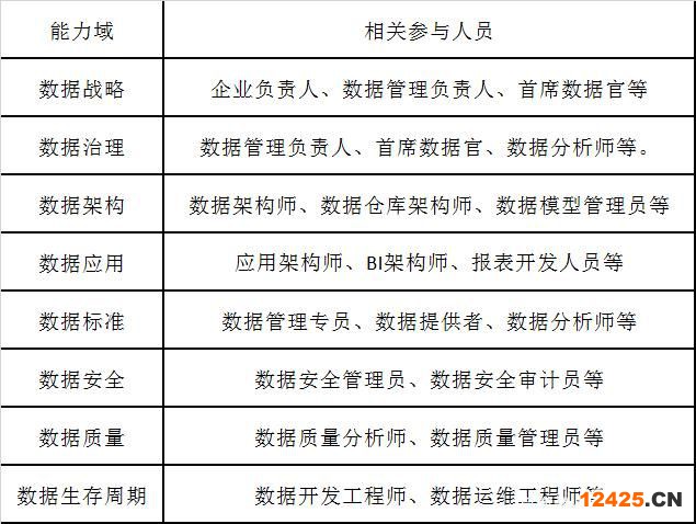一般來說,數(shù)據(jù)戰(zhàn)略和治理需要的是管理人員,其余6個能力域需要的是技術人員,從實際評估角度來說,企業(yè)匹配人員一般在5-10個。