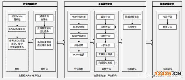 DCMM評估流程分為評估準備、正式評估和結果評議三個階段。