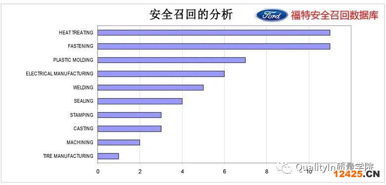 圖片來源:福特安全召回?cái)?shù)據(jù)庫,它也包含了福特和其他汽車制造廠商的主要召回。從上圖看出熱處理、注塑、電鍍、焊接、涂裝、塑模和鑄造等,是造成安全召回的主要因素。