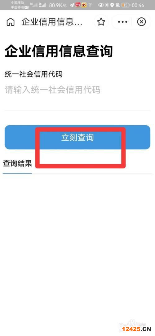 在新的頁面,輸入社會信用代碼,點擊【立刻查詢】。