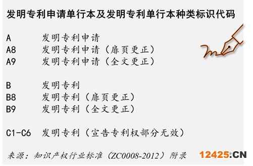 什么是專利文獻(xiàn)種類標(biāo)識(shí)代碼呢?請(qǐng)參考《知識(shí)產(chǎn)權(quán)行業(yè)標(biāo)準(zhǔn)(ZC0008-2012)》。