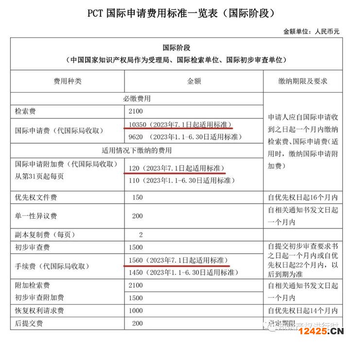 PCT國際申請(qǐng)費(fèi)用標(biāo)準(zhǔn)一覽表(國際階段)