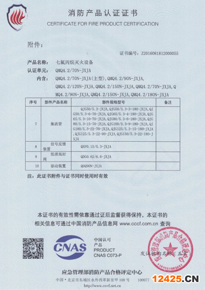 1.證書名稱:消防產(chǎn)品認(rèn)證證書,證書有效期為5年。