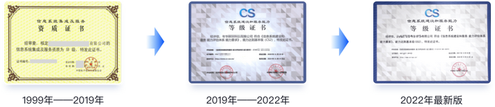 CS的前身是同為中國電子信息行業(yè)聯(lián)合會發(fā)行的“計算機信息系統(tǒng)集成評估標準”。為了滿足業(yè)內(nèi)日益多態(tài)的標準依賴,中電聯(lián)推出新版一一“信息系統(tǒng)建設及服務能力等級認證” (簡稱CS認證),用以取代舊版系統(tǒng)集成標準。CS認證由低到高共分為五個等級,其中一級最低,五級最高。