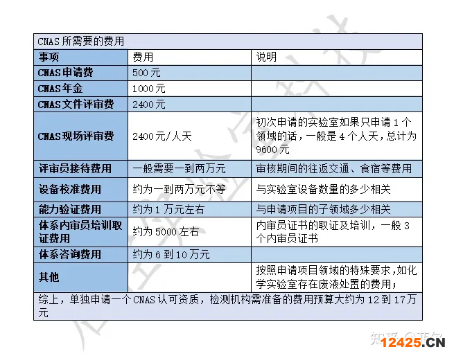 我們再來看CMA所需要的費用,CMA沒有申請費和評審費,評審員食宿、交通費及其他費用和CNAS差不多,約1到兩萬,設備校準費用和能力驗證費用和CNAS一樣。體系咨詢費用約為5~8萬,單獨做CMA的全部費用約為8到13萬。如果兩個同時做的話,咨詢費用一般能比單體系優(yōu)惠,全部費用約為12~21萬。