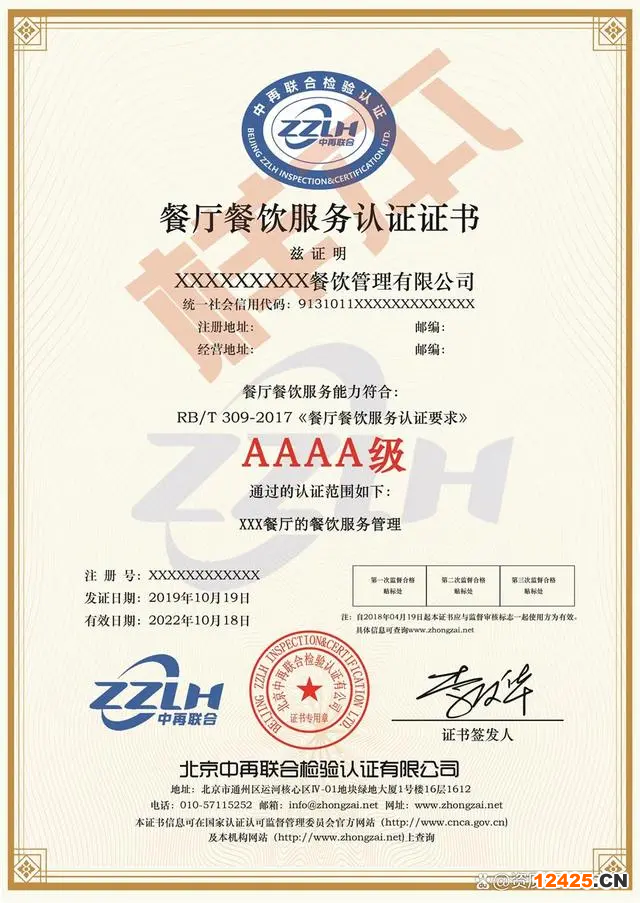 餐廳餐飲服務(wù)是與大家生活息息相關(guān)的服務(wù),其質(zhì)量直接關(guān)系到我們的身體健康和飲食享受。為了保證消費(fèi)者的利益,國(guó)家認(rèn)監(jiān)委、認(rèn)證認(rèn)可監(jiān)督管理委員會(huì)制定了5A餐廳餐飲服務(wù)體系認(rèn)證證書(shū)認(rèn)證標(biāo)準(zhǔn)RBT309-2017.只有符合該標(biāo)準(zhǔn)的餐廳才能獲得認(rèn)證證書(shū)。