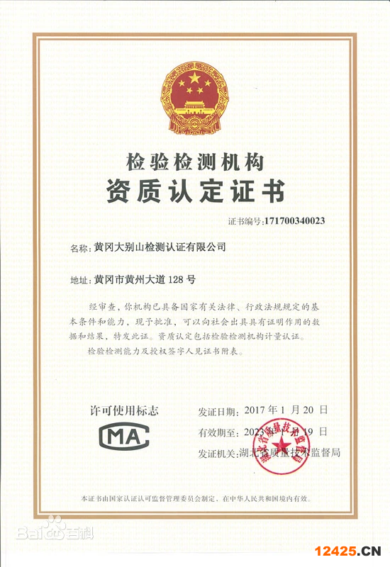 檢驗(yàn)檢測(cè)機(jī)構(gòu)資質(zhì)認(rèn)定書