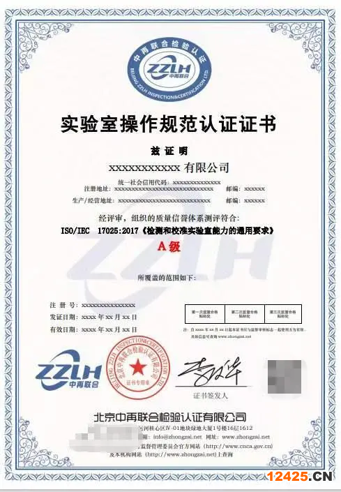 ISO17025實(shí)驗(yàn)室操作規(guī)范認(rèn)證證書 檢測(cè)和校準(zhǔn)實(shí)驗(yàn)室通用