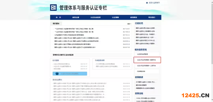 進(jìn)入快捷通道后,找到右下方“相關(guān)信息系統(tǒng)”,點擊“認(rèn)證認(rèn)可業(yè)務(wù)信息統(tǒng)一查詢平臺”;