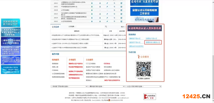 打開網(wǎng)站后,下拉看到右下方的“快捷通道”,點擊“管理體系與服務(wù)認(rèn)證”;
