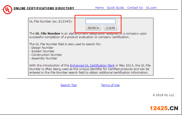 通過UL檔案號查詢:在文本框中輸入UL檔案號,然后按"SEARCH"即可。