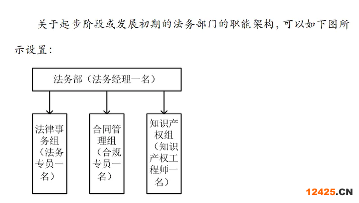 關(guān)于法務(wù)部門的職能架構(gòu),如果每個(gè)專業(yè)模塊都是組的話,可以設(shè)置法務(wù)部,下轄: