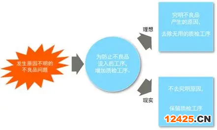 問題是,質(zhì)檢工序設(shè)置之后依舊會(huì)產(chǎn)生不良品,企業(yè)往往不究明其中的原因,只會(huì)不斷地推行檢查。