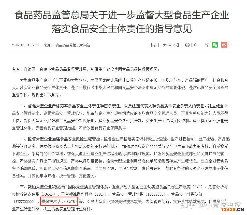2016年12月份,在國家發(fā)布的對(duì)于落實(shí)食品安全主體責(zé)任的相關(guān)意見中就提到了AIB審核,也說明了AIB審核得到了官方的認(rèn)可。