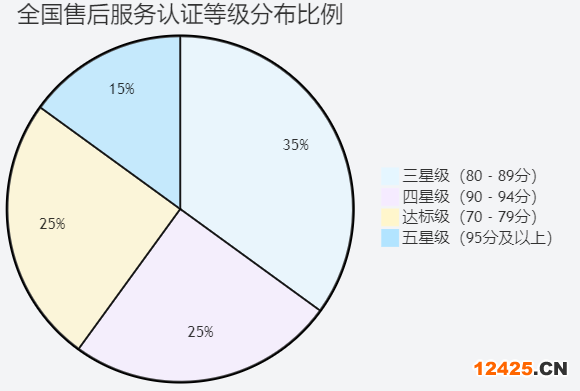 依據(jù) GB/T 27922 - 2011《商品售后服務(wù)評價體系》國家標準,全國售后服務(wù)認證采用百分制評分,根據(jù)企業(yè)最終得分,將售后服務(wù)認證劃分為四個等級,從低到高依次為:達標級、三星級、四星級、五星級。這四個等級層層遞進,全面反映了企業(yè)在售后服務(wù)體系建設(shè)、服務(wù)執(zhí)行能力、客戶滿意度等方面的綜合水平 。